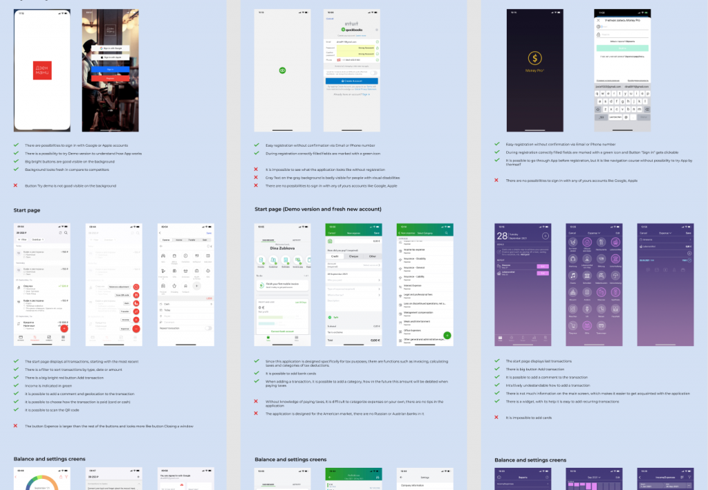 The first step was to evaluate competitors, after which competition analysis was performed before starting to work on a project. That helped to understand the design solutions of our competitors such as the features, functions, flows.