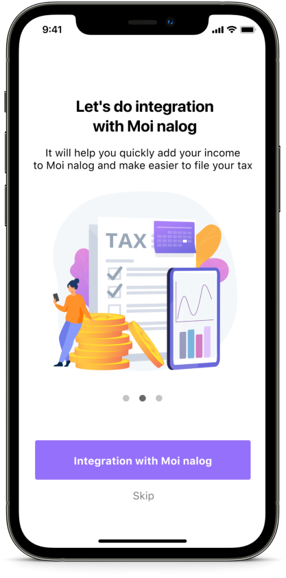The main idea was to create a financial tracking application with the ability to integrate it with an app for paying taxes and to simplify the process of adding income to taxes app.
