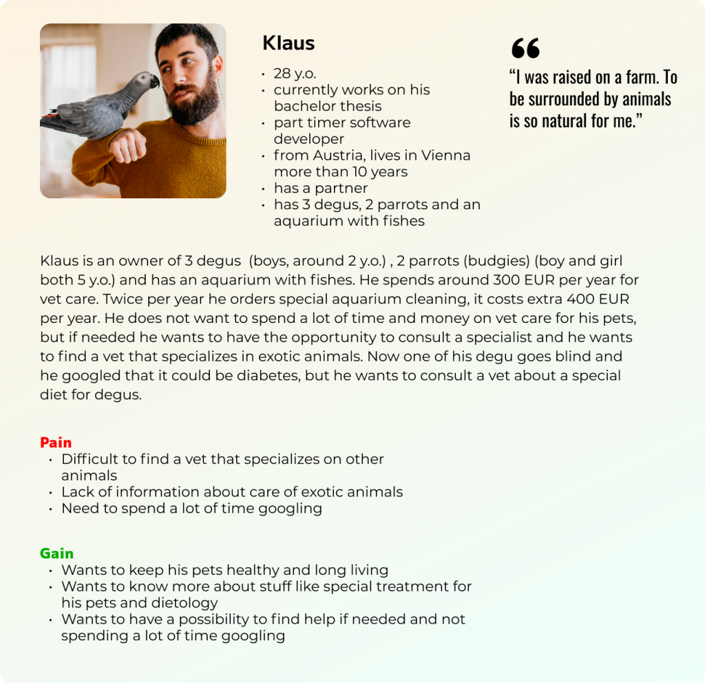 Currently in Austria there are no apps that provide veterinarian services such as scheduling an appointment to a veterinarian online without calling the clinic.