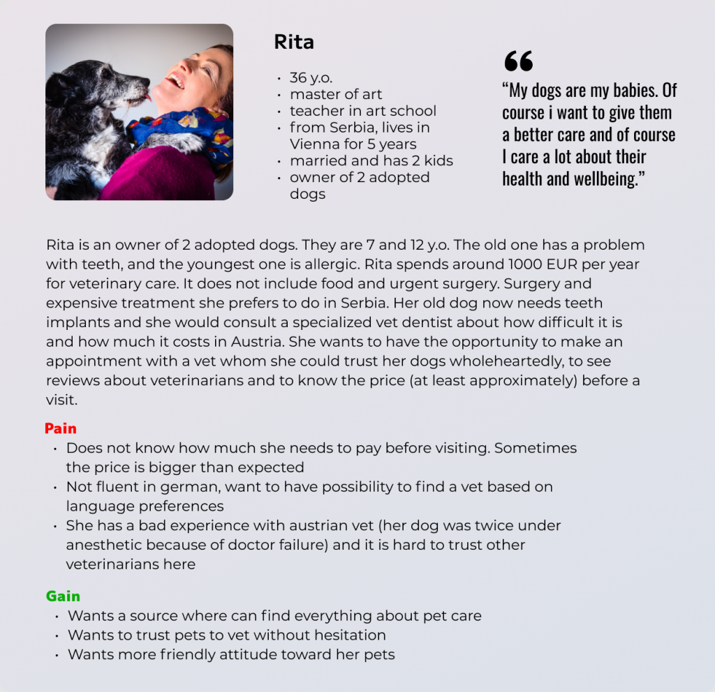 Rita is a non-german speaking owner of 2 dogs that lives in Vienna, Austria and needs opportunity easier to contact veterinarian because her dogs need special treatment