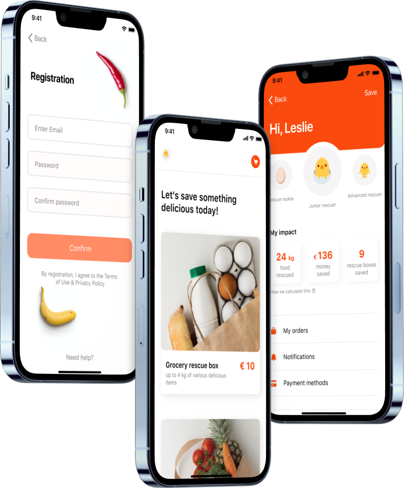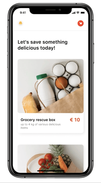 Considering all of the above I created a concept of a mobile application that helps to save food surpluses that are not sold by grocery stores. A buyer purchases a surprise package with unsold food for a donation, thus contributing to the fight against food waste.