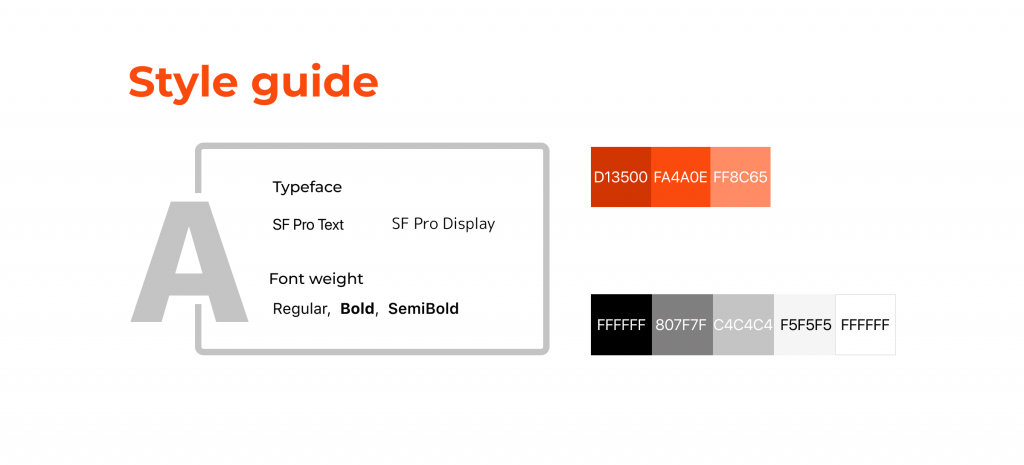 My next steps before creating Hi-fidelity prototype were collecting references, creating moodboard and style guide, that consist of color palette, typeface, style and icon set.